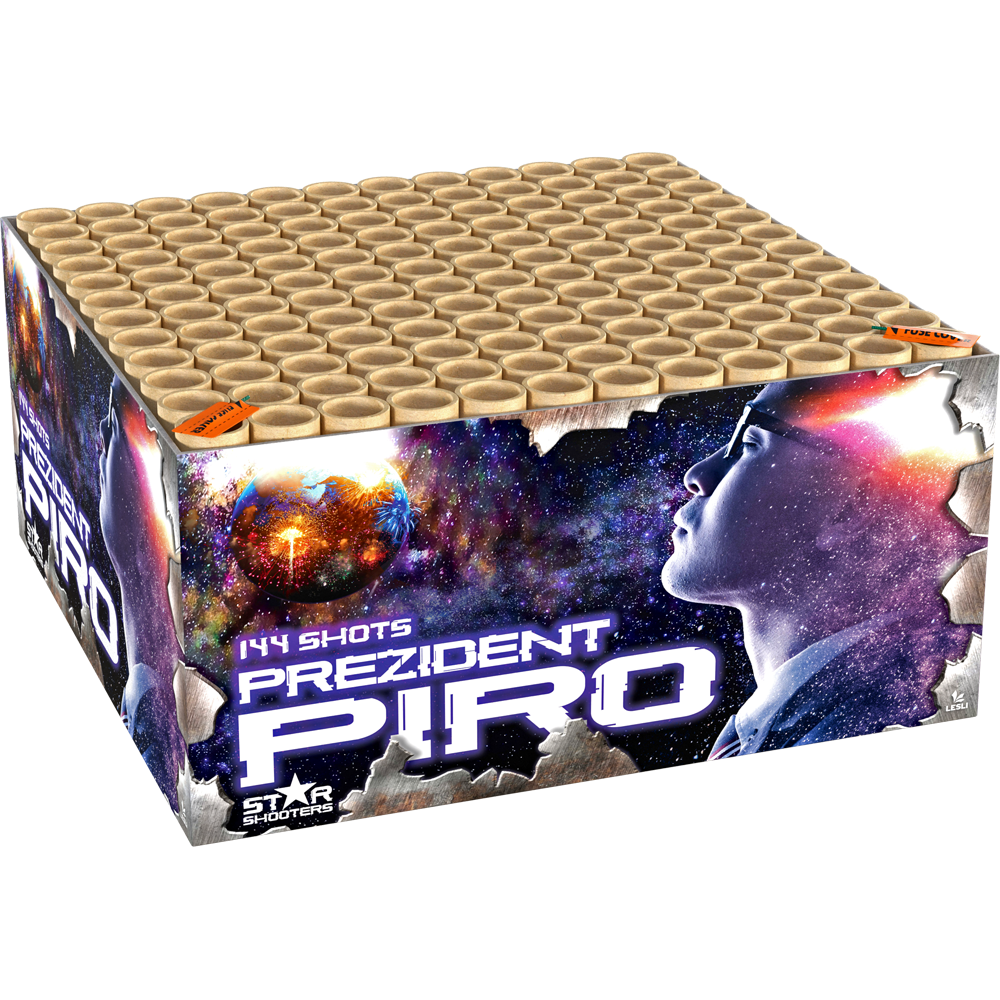 nKaliber 25 nAantal schoten 144 nBrand duur 90 Seconden Prezident Piro Goedkoop vuurwerk kopen bij Vuurwerkwinkel Eersel